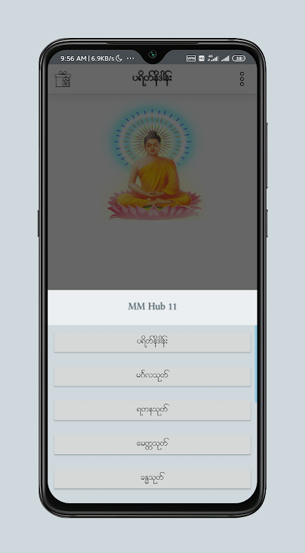 মায়ানমার হাব 11 সমস্ত বৌদ্ধ ধর্মের জন্য একটি নিখরচায় অফলাইন অ্যাপ্লিকেশন I এটি এমপি 3 এবং হাব 11 এর জন্য পাঠ্য ধারণ করে।