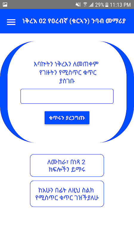 ነቅረእ 02 የዐረብኛ (ቁርኣን) ንባብ መማሪያ የሞባይል አፕልኬሽን የነቅረእ 01 የዐረብኛ ፊደላት መማሪያ የሞባይል አፕልኬሽን ቀጣይ ክፍል ሲሆን፣ አማርኛን በአግባቡ ማንበብ ለሚችሉና የዐረብኛ ፊደላትን በደንብ ለይተው ለሚያውቁ የዐረብኛ (ቁርኣን) ንባብን ቀላል በሆነ መንገድ የሚያስተምር ዘመናዊ የሞባይል አፕልኬሽን ነው።