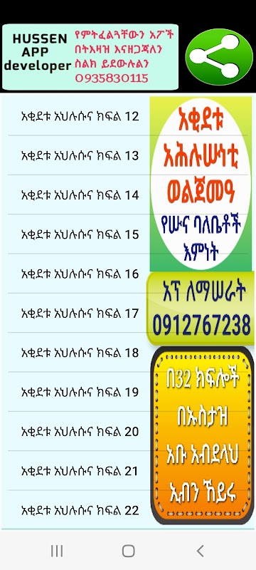 - এই অ্যাপটি ডাঃ হুসেন উমর দ্বারা এত সুন্দরভাবে ডিজাইন করা হয়েছে, আমরা অর্ডার দিয়ে কুরআন পাঠ, হাদিস পাঠ এবং তাফসির অ্যাপ্লিকেশনও প্রস্তুত করি। আপনি আমাদের এই ফোন নম্বর 251912767238 এ যোগাযোগ করতে পারেন।