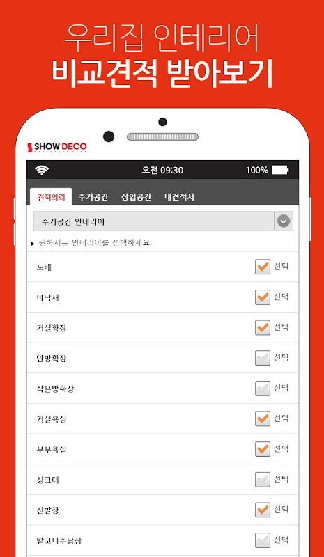 1. 원하시는 시공대상(주거공간/상업공간)을 선택하세요
