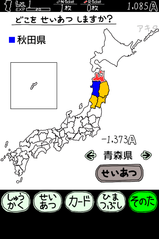 日本全て制圧後、同じ都道府県を何度も制圧出来るようになります。