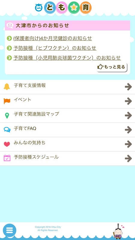 おおつ子育てアプリ「とも☆育」は、大津市の公式アプリです。