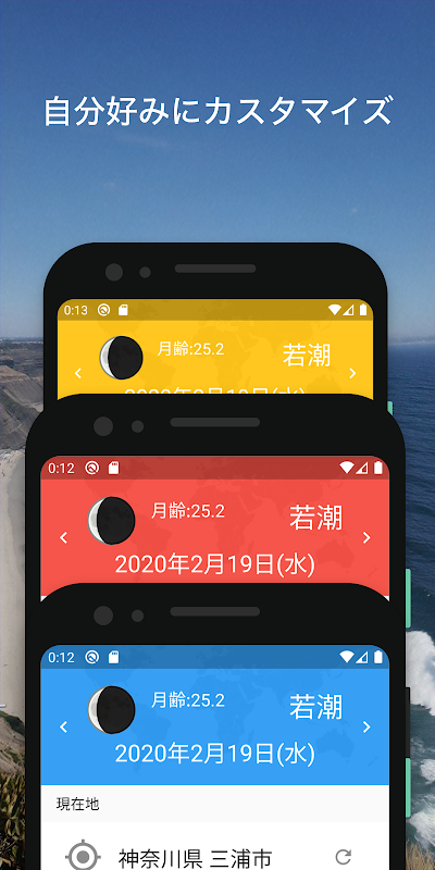 একটি অ্যাপ্লিকেশন যা "জোয়ার তথ্য" প্রদর্শন করে। ফিশিং / ক্ল্যামিং / সার্ফিং ইত্যাদি এটি সামুদ্রিক অবসর জন্য ব্যবহার করা যেতে পারে।