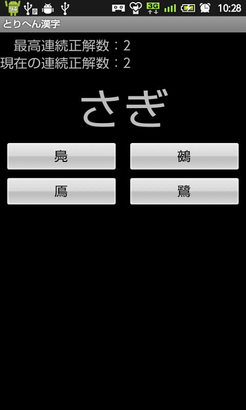 鳥偏の漢字を「漢字から読み」、「読みから漢字」を当てるシンプルなゲームです。