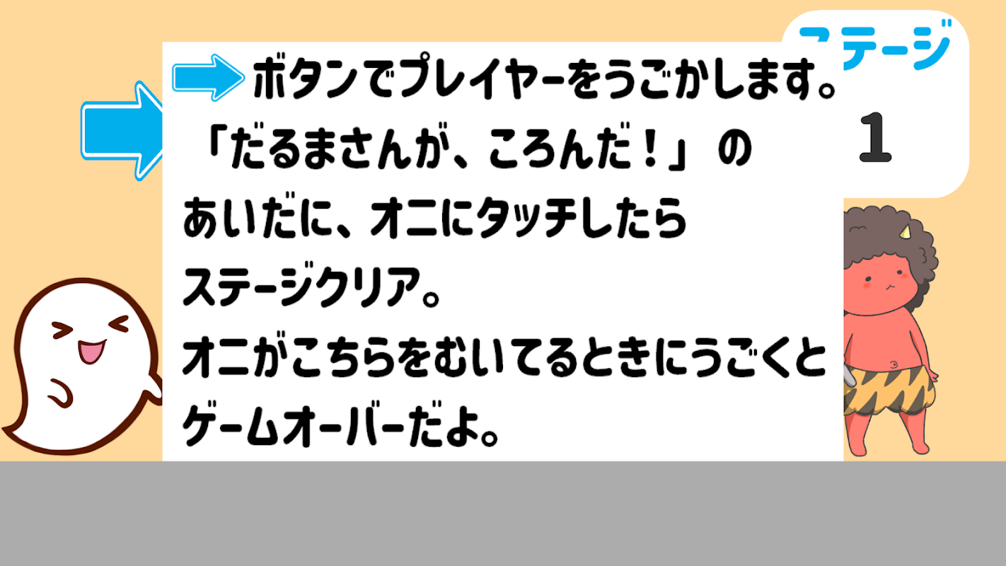 "Daruma-san ga Koronda!" ক্রম চলাকালীন Oni (খেলোয়াড়) এর কাছে যান এবং সে ঘুরে দাঁড়ানোর আগে Oni স্পর্শ করুন!