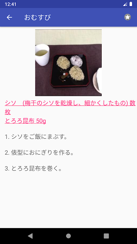 各レシピの写真もこのアプリで提供されています。