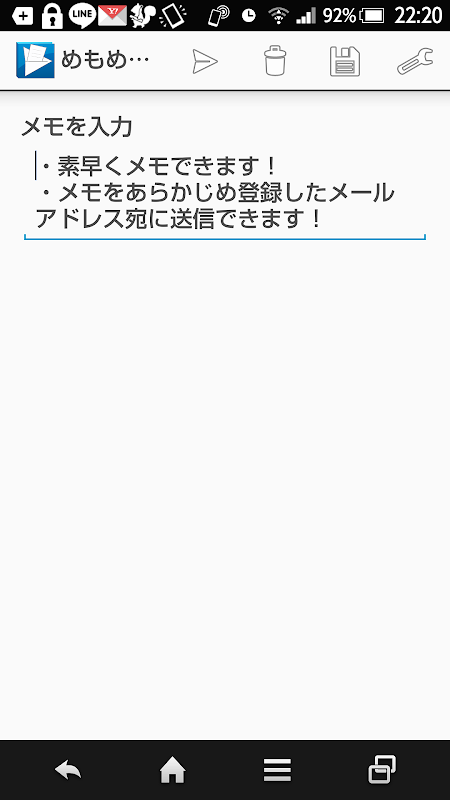 素早くメモできて、あらかじめ登録しておいたメールアドレスにメール送信できるアプリです。