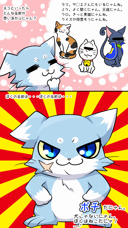 ポチは、ねこ。本当にねこ。わかるにゃ?猫だっていってるにゃ!