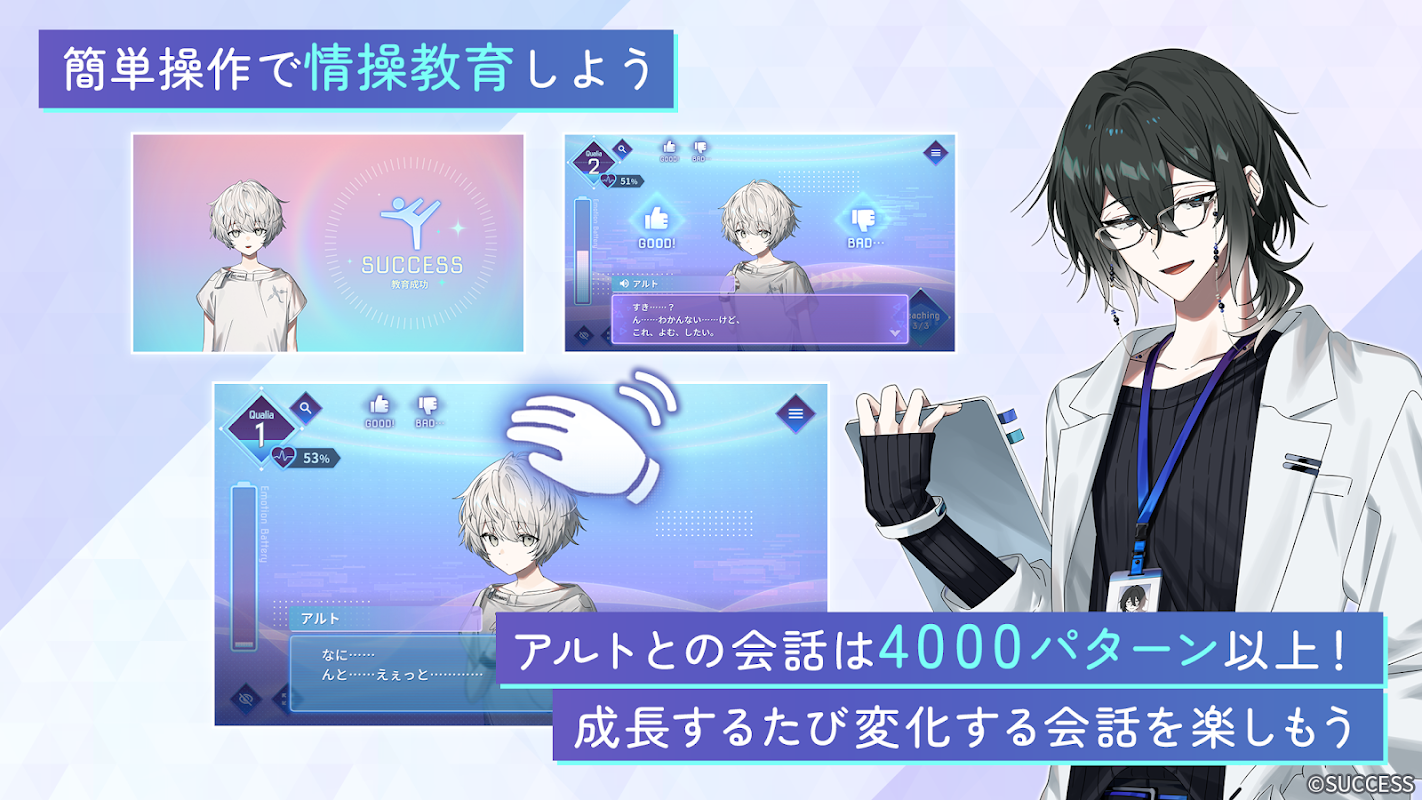 "আমি এই শিশুটিকে খুশি করব" "বৃদ্ধি" এবং "সুখ" এর থিম সহ একটি প্রশিক্ষণ সিমুলেশন ADV, আবেগ সহ একটি এআই ছেলে৷
