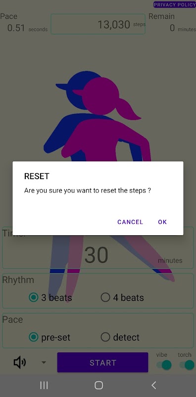 音や振動、カメラトーチでウォーキングのステップリズムをお知らせするシンプルなユーティリティアプリです。