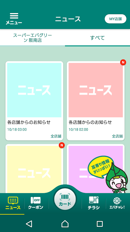 エバコイン、クーポン、チラシはもちろん、アプリ限定の「エバチャレ!」抽選も楽しめます。