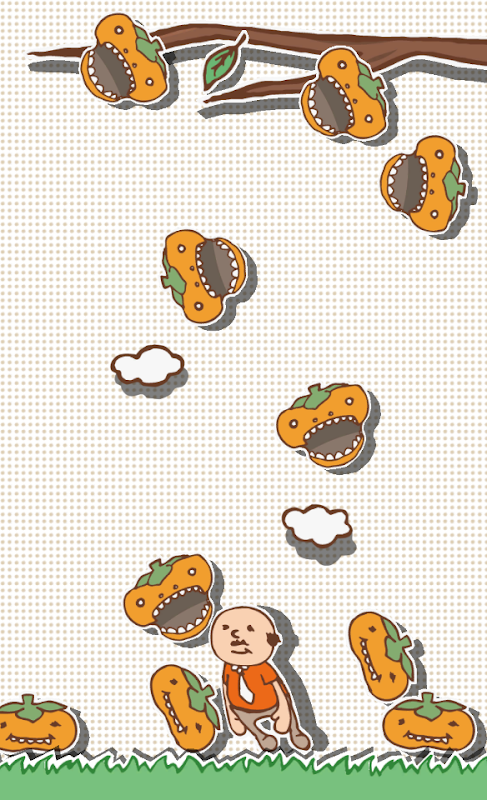大人気節電アプリ「ぼく、スマホ」のおじさんが、ついにゲームになって登場!その名も「カキおじ」落ちてくる人食い柿をよけながら拾って、最高記録を目指そう!