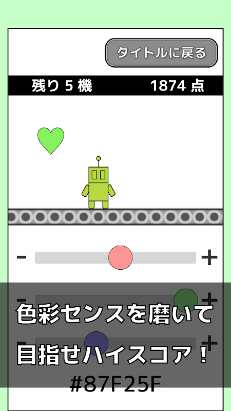 手元の操作パネルで、R、G、B、それぞれの値を動かして同じ色になるように調節しましょう。魂の色は、16進数のカラーコードで表され、画面下部に表示されます。