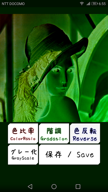 スマホ内の画像の色を自由に変更するアプリです。 三原色の割合を変更、グラデーションの追加、色の反転やグレースケール変更ができます。