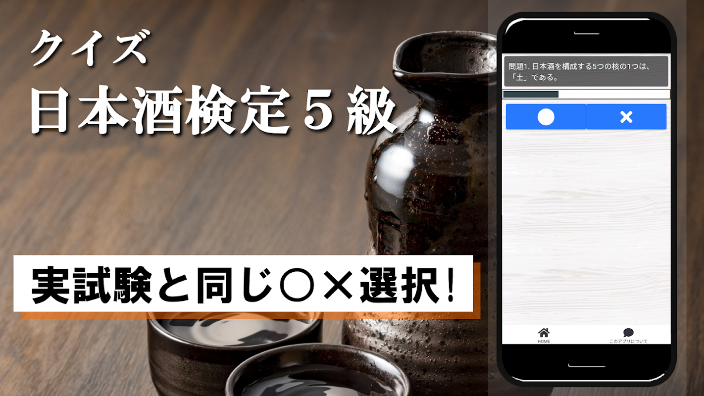 実 際 の 「日本 酒 検 定 5 級」 と 同 様, ○ × 形式 の ク イ ズ に な っ て い ま す の で, こ の ア プ リ ひ と つ で 試 験 対 策 は ば っ ち り で す!