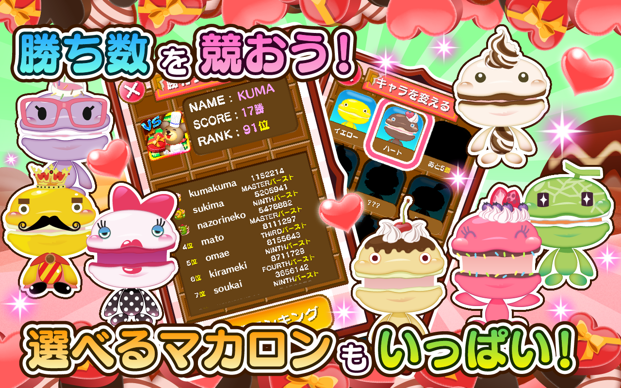 ◆全国のプレイヤーとの通信対戦!勝敗数に応じて新しいマカロンや称号を獲得できる!