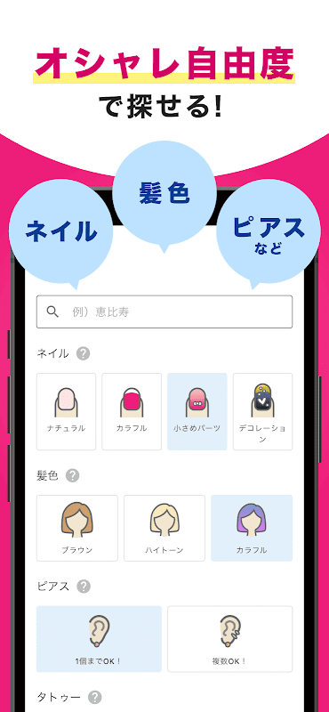 ফ্যাশন ফ্রিডম: চুলের রঙ, নখ, ছিদ্র, ট্যাটু এবং আরও অনেক কিছুর মতো মানদণ্ড অনুসারে আপনার অনুসন্ধানকে সংকীর্ণ করুন।