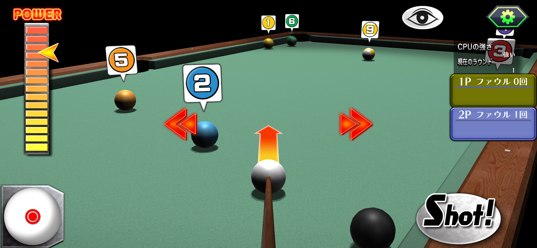 একটি খাঁটি 3D বিলিয়ার্ড যা স্ট্রাইকিং শক্তি এবং স্ট্রাইকিং পয়েন্ট পরিবর্তন করে একটি মোচড় দিয়ে ব্যবহার করা যেতে পারে।