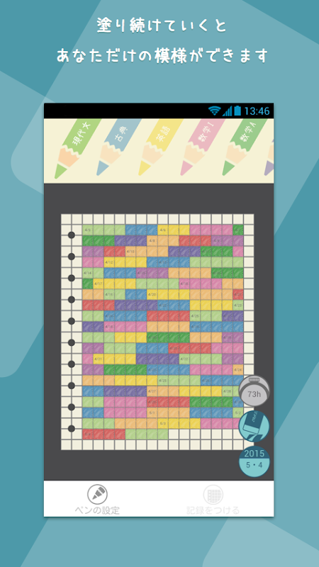 方眼紙のマス目を勉強した分だけぬっていく。たったそれだけのことで、あなたの勉強時間を可視化できます。教科ごとの勉強時間累計や勉強のバランスが一目で分かるので、時間の使い方の振り返りもカンタン。モチベーションアップにも一役買ってくれることは間違いありません!