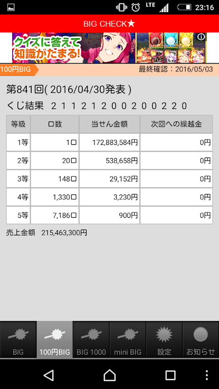 サッカーくじ、BIGの当選速報・結果速報 1.0.5
