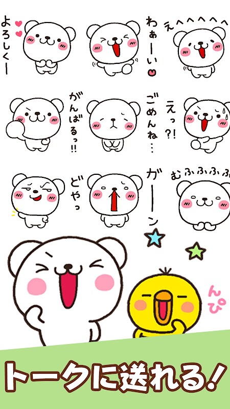 এই অ্যাপটি আনুষ্ঠানিকভাবে বিখ্যাত স্ট্যাম্প শিল্পীদের দ্বারা অনুমোদিত। আপনি সরাসরি অ্যাপ থেকে আপনার চ্যাটে স্ট্যাম্প পাঠাতে পারেন। এটা বিনামূল্যে. (ইন্সটল করার পরপরই ব্যবহার করা যাবে। *কোন রেজিস্ট্রেশনের প্রয়োজন নেই)
