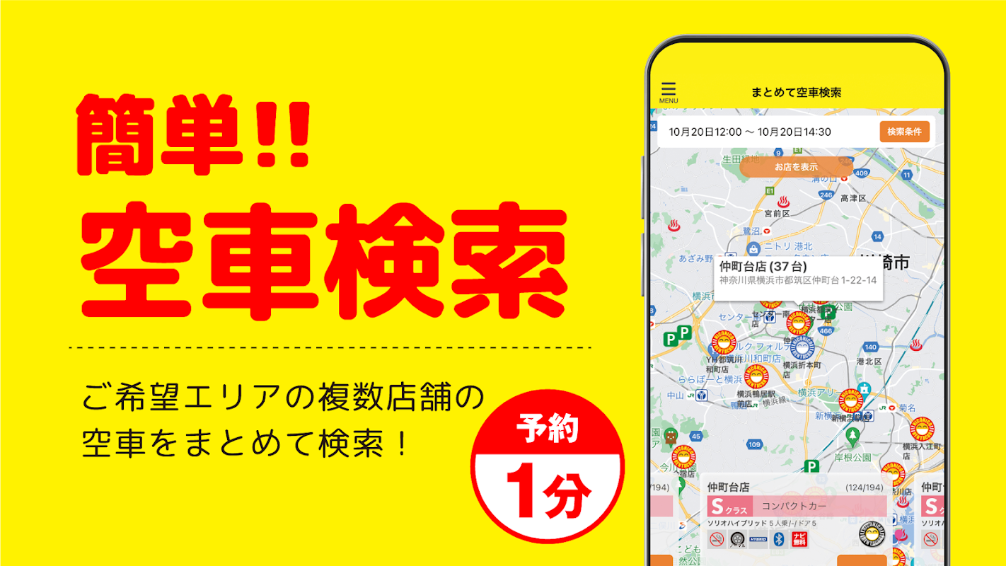 ◆সর্বনিম্ন মূল্যে 24 ঘন্টার জন্য যেকোন সময় অ্যাপ থেকে ভাড়া গাড়ি রিজার্ভেশন [12 ঘন্টার জন্য 2,525 ইয়েন]◆