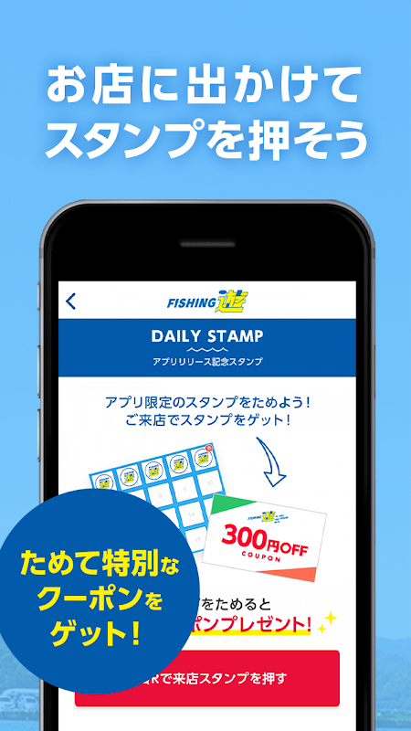 অ্যাপটির অনন্য অনেক বৈশিষ্ট্য রয়েছে, যেমন কুপন, স্ট্যাম্প এবং কাছাকাছি দোকানের তথ্য! এছাড়াও আপনি কর্মীদের মাছ ধরার রিপোর্ট এবং সর্বশেষ ইভেন্ট তথ্য পরীক্ষা করতে পারেন।