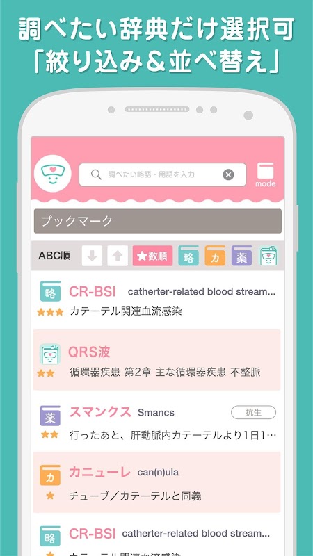 看護師・看護学生向け医学・看護辞典アプリ★略語、カルテ用語、薬、疾患まで40,000語以上を掲載!注目キーワードや人体解剖図の一覧で隙間時間の学習・勉強にも♪