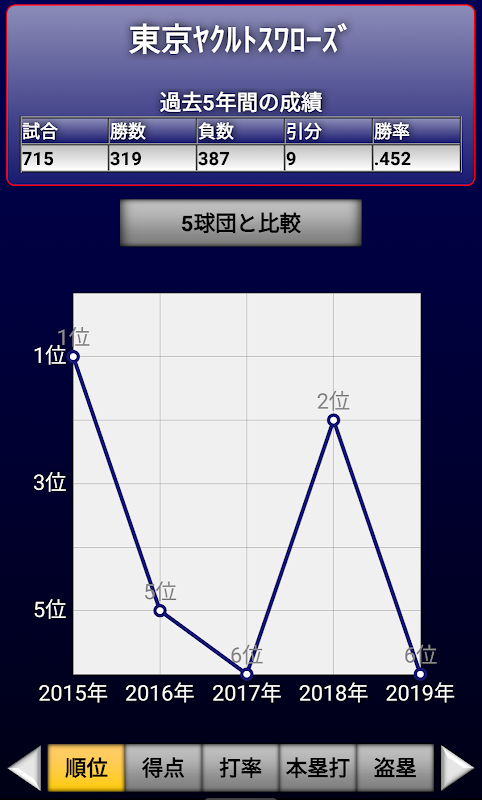 球団毎の各成績の遷移や他球団との比較、選手毎の成績の遷移が