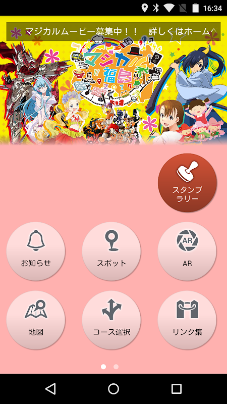 スマートデバイス用アプリ「マジめぐ」は、マジカル福島のイベント情報やアニメなどの聖地情報、協力店のお得情報が満載です。