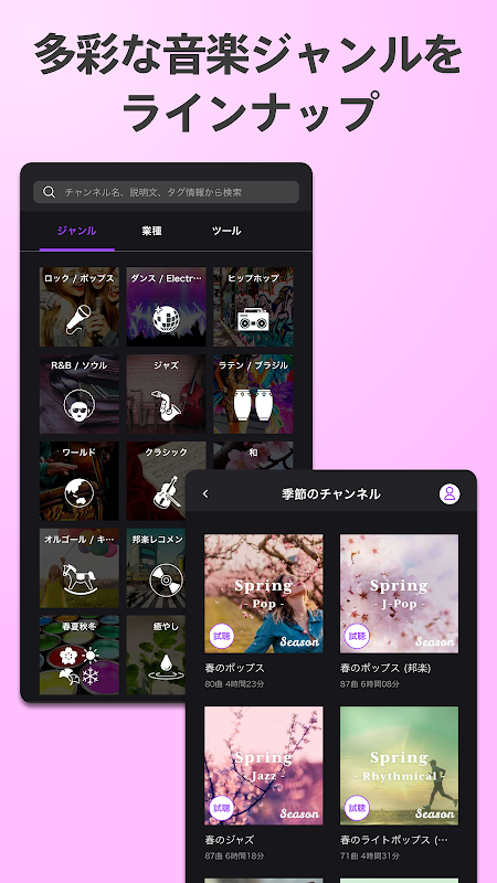 B বিশ্বজুড়ে ৫ মিলিয়ন গান থেকে নির্বাচিত বিজিএম-নিবেদিত চ্যানেলের সীমাহীন ব্যবহার