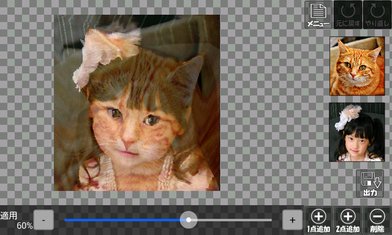 モーフィングとは2つの写真を変形を用いて合成し、中間の画像を作ることです。
