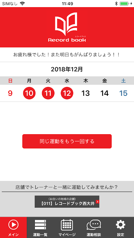 ・レコードブックトレーナーへの運動相談が可能なメッセンジャー機能を搭載