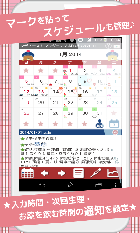 可愛いルルロロを見ながら毎日の身体の状態を保存しよう!