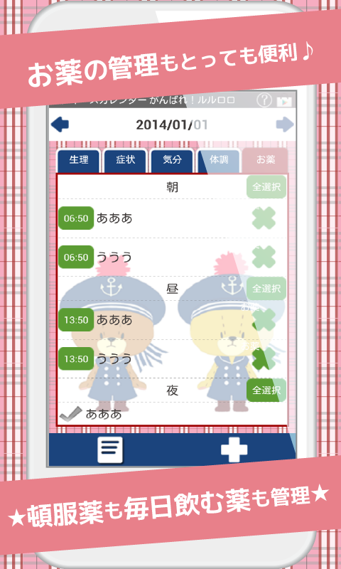 レディースカレンダー「がんばれ!ルルロロ」で女性に必要な管理がすべてできる♪