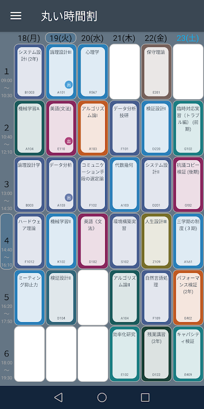 学生の為のおしゃれな時計型の時間割アプリです。 オンライン版ですので、ほかの学生と交流を深め、知り合いや友達を増やして楽しい学生ライフを!(オフライン版も有)