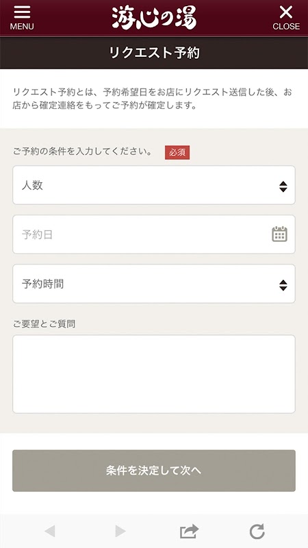 আপনি পছন্দসই লোকের সংখ্যা এবং তারিখ এবং সময় উল্লেখ করে কেবল কোনও সংরক্ষণের জন্য অনুরোধ করতে পারেন।