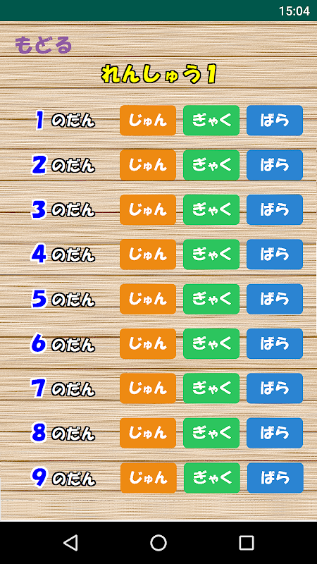 ※「れんしゅう1」と「れんしゅう2」の違いは、「れんしゅう1」は1段の中から問題が出題されますが、「れんしゅう2」は3段の中から問題が出題されます。