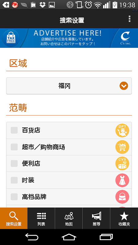●登载了各地区的所有免税店