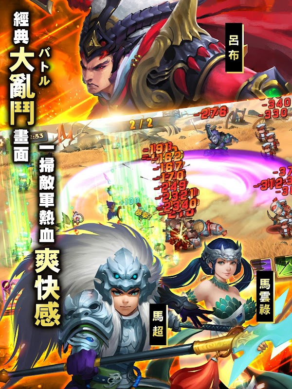 橫版SLG的戰鬥模式,搭配Q版人物模組,打造每位武將性格特點。
