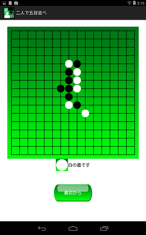 一人用のモードはありませんが、一人で五目並べの研究をするときにも使えるかも?
