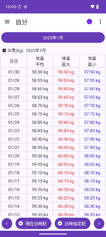 体重 体脂肪 記録帳 体重管理と体重グラフを表示します