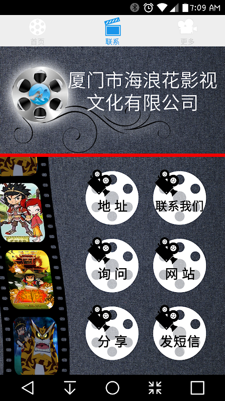 厦门市浪花影视文化有限公司主要经营电视剧、电视专题、电视综艺、动画故事节目,是一家集影视作品的策划、创意、拍摄及后期剪辑制作、整体影视形象包装的专业影视公司。我们的app可以帮助您:一键电话联系我们,浏览我们的产品和服务,手机定位我们的公司,分享app给您的朋友,联系我们等等。