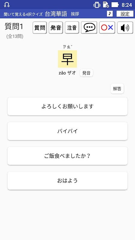 ☆全ての質問を台湾華語の音声で読み上げ、消音も可 ※クイズモード