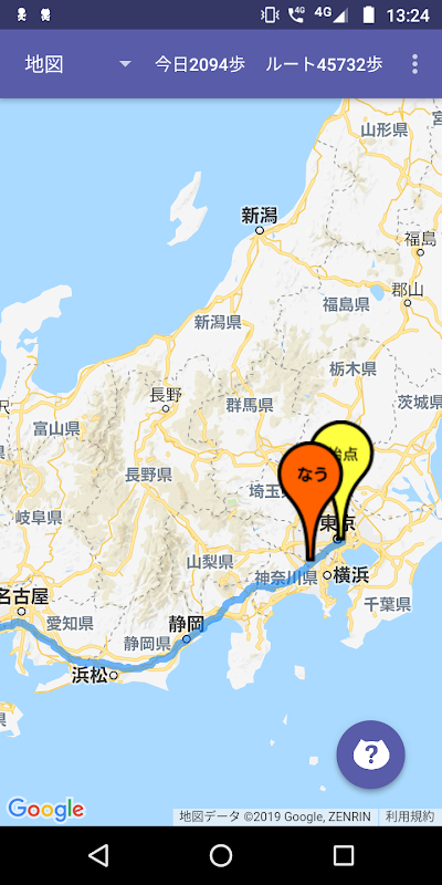インストール後アプリ画面を開き地図とその上に旅ルートが表示されている事を確認するだけ!