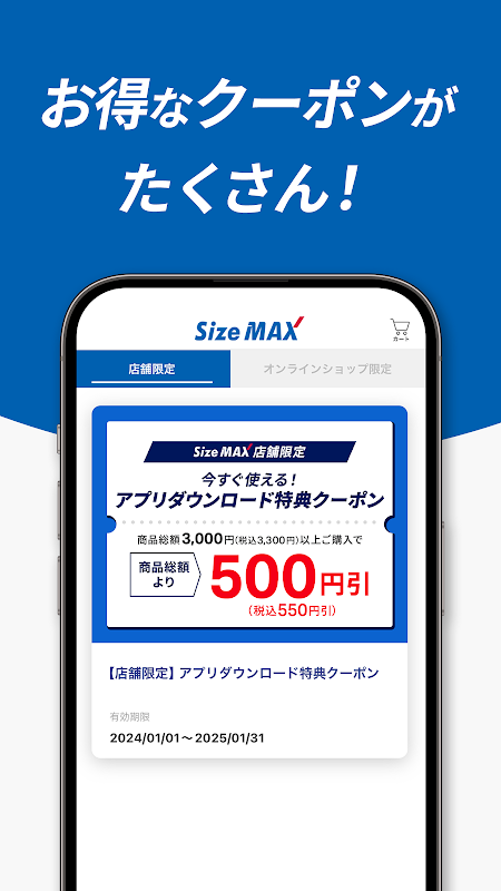 বড় আকারের সাইজ MAX অফিসিয়াল অ্যাপ। আমরা ইন-স্টোর এবং অনলাইন শপিং উভয়ই সমর্থন করি। আমরা বিভিন্ন তথ্য প্রদান করব যেমন সর্বশেষ বিক্রয় তথ্য এবং সুবিধাজনক কুপন।