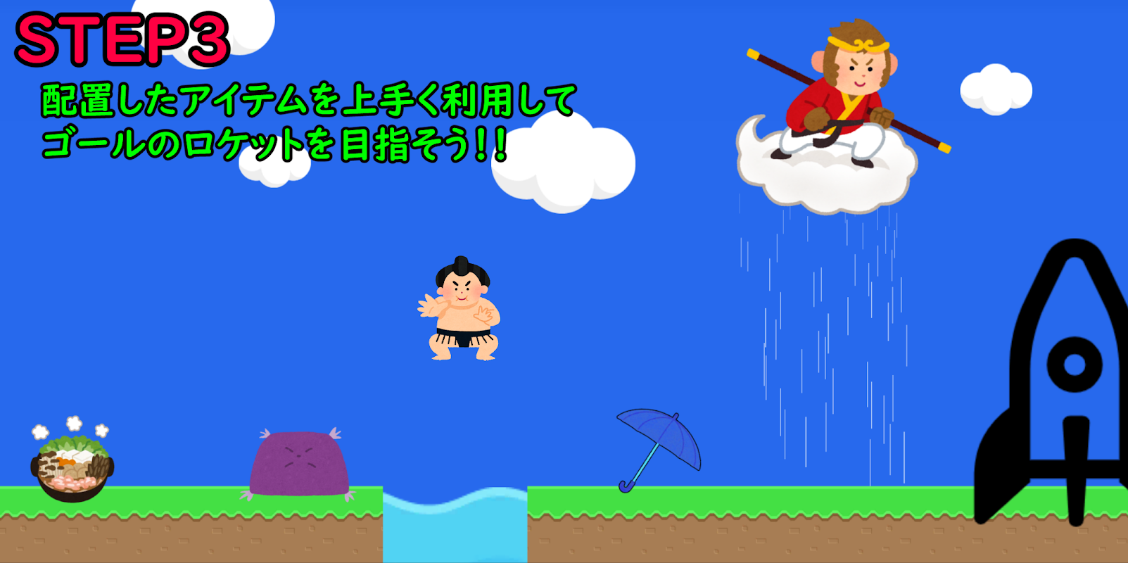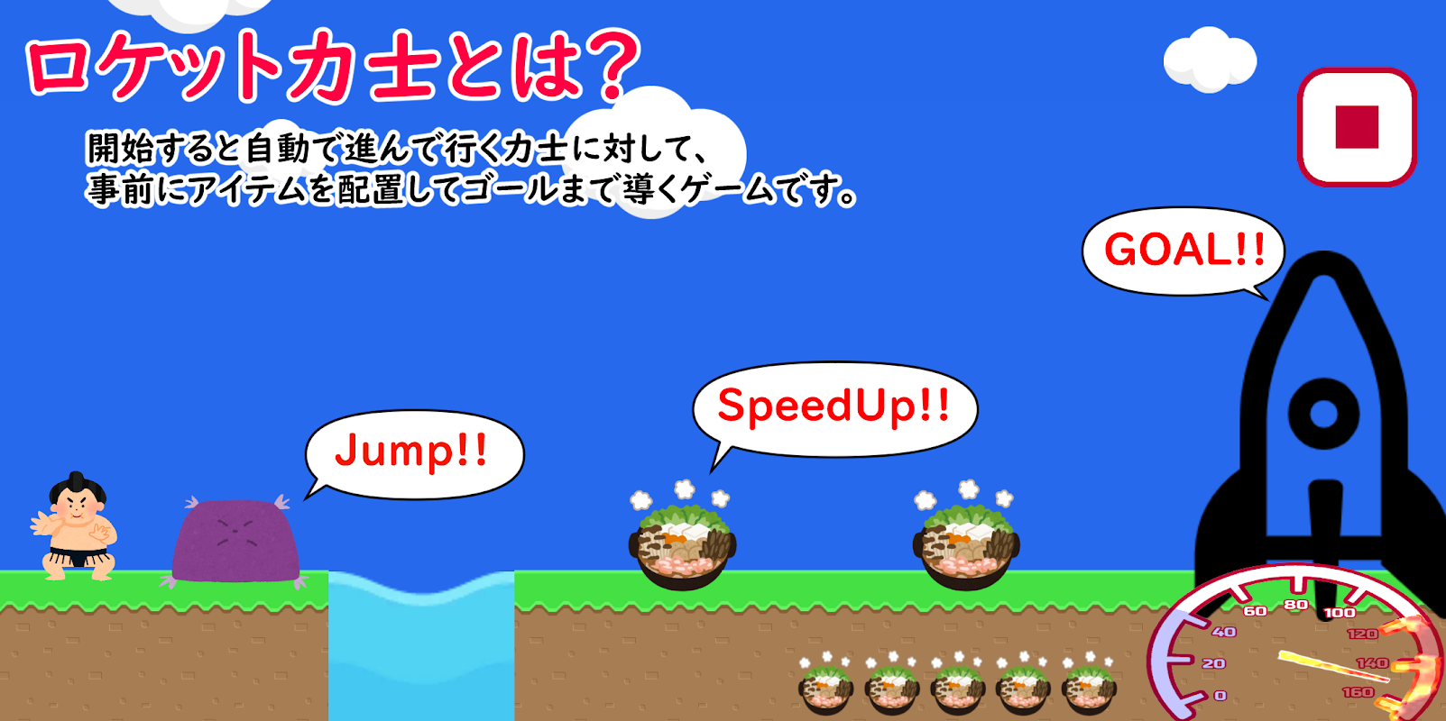 プレイヤーとなる力士をゴールのロケットまで導こう!