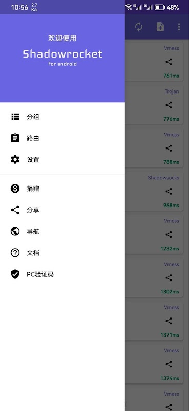 ক্লায়েন্ট Trojan, Vmess, VLESS, Socks, Shadowsocks প্রোটোকল সমর্থন করে।