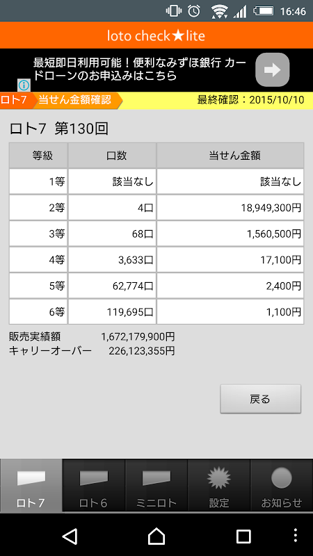 宝くじ(ロト7・ロト6・ミニロト)の当選確認・速報 1.2.1