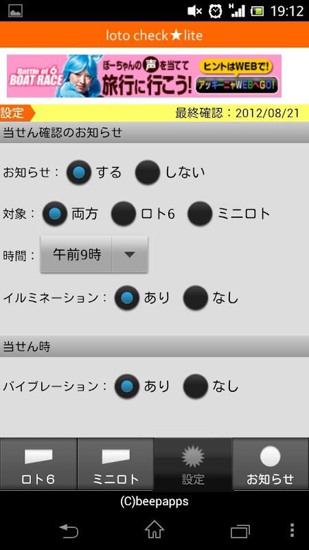 宝くじ(ロト7・ロト6・ミニロト)の当選確認・速報 1.2.0